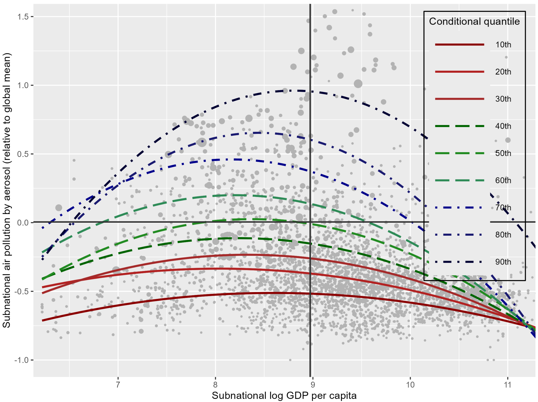 This paper provides the first global subnational analysis of the Environmental Kuznets Curve (EKC), relating GDP per capita and air pollution by aerosol. We use satellite data for Aerosol Optical Depth (AOD), a proxy for air pollution, and merge it with subnational GDP per capita for 2010 and population estimates. Our polynomial and quantile regressions confirm a robust inverted U-shaped relationship between income and pollution globally. However, we find significant heterogeneity across the air pollution distribution, with lower pollution quantiles exhibiting a flatter curve than higher pollution ones. Estimated Pollution-GDP elasticities confirm the overall EKC trend globally, with poorer regions exhibiting positive elasticities, while richer regions show negative magnitudes. However, considerable variation exists within regions, emphasizing that the development-pollution trajectory is not uniform.